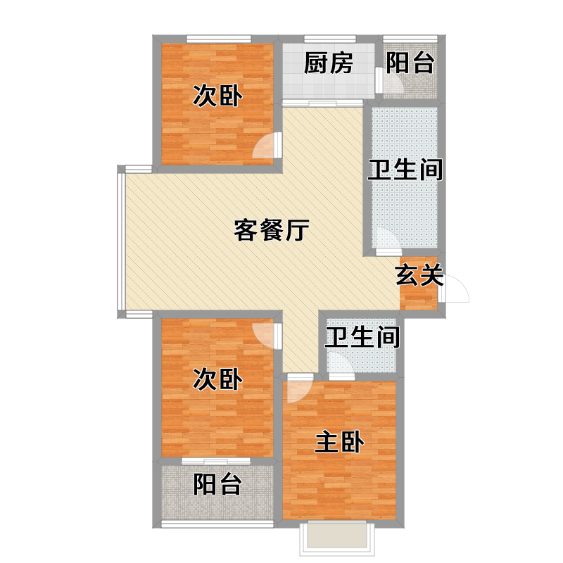 扩大厨房面积,卫生间改为1卫。同时希望能增加餐厅,谢谢!